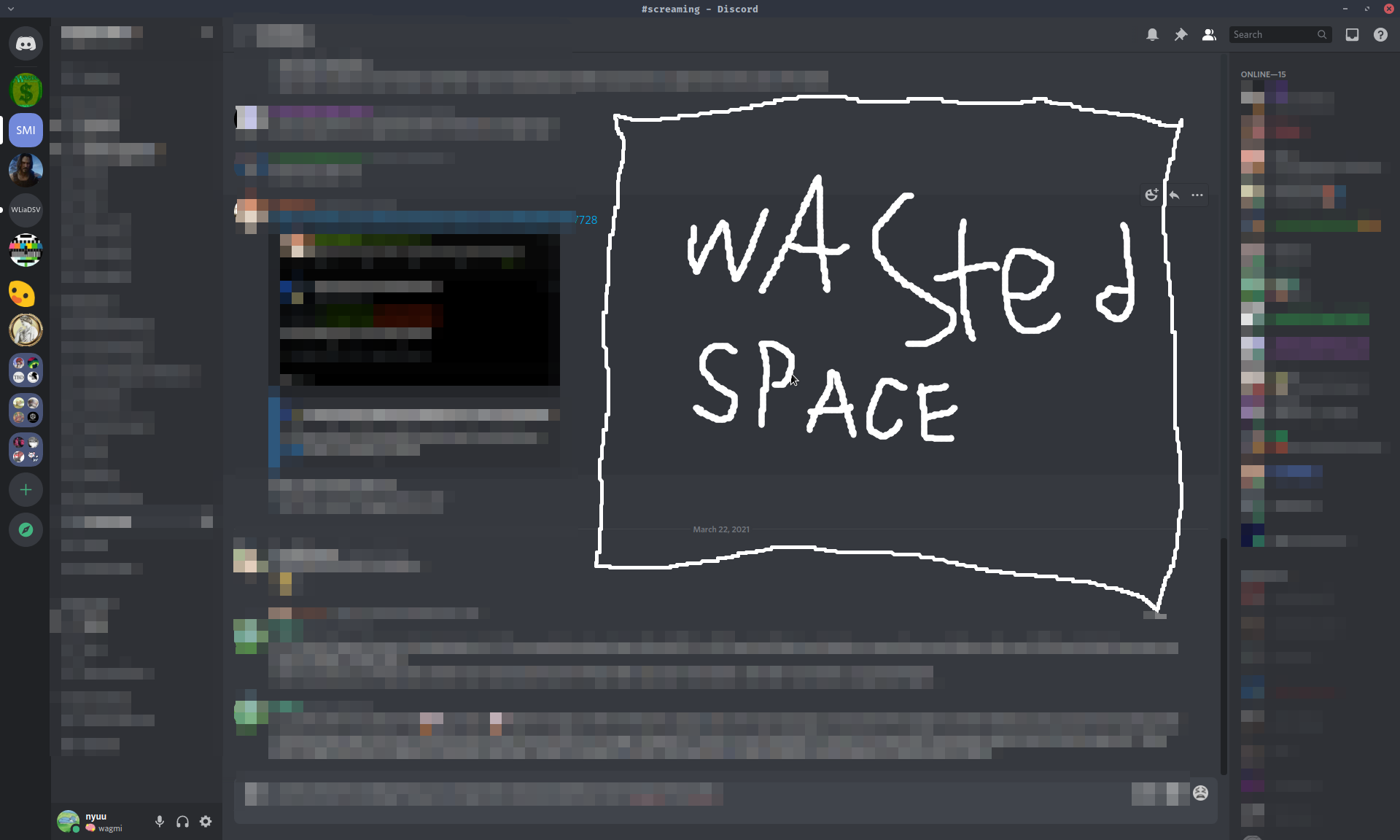 Most chat conversations word-wrap very well. Most of the messages are way shorter than one “typical screen-length line”, so there’s lots of unused space after the lines. Consider the following anonymized discord conversations, presented in portrait and landscape view.